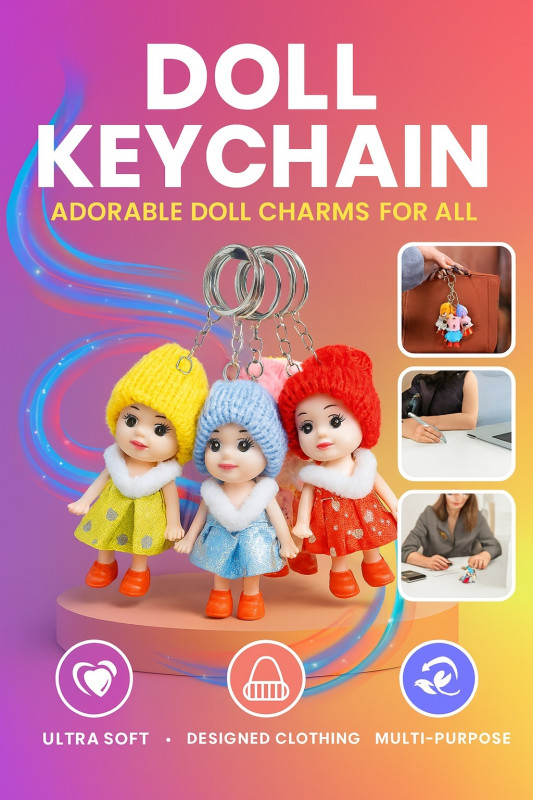 Bring charm and cuteness everywhere with this Adorable Doll Keychain! ? Each keychain features a mini doll dressed in stylish clothes and cozy knitted caps, making it the perfect accessory for keys, bags, or as a collectible gift. Made with ultra-soft, durable materials, these doll keychains are lightweight, eye-catching, and fun to carry.