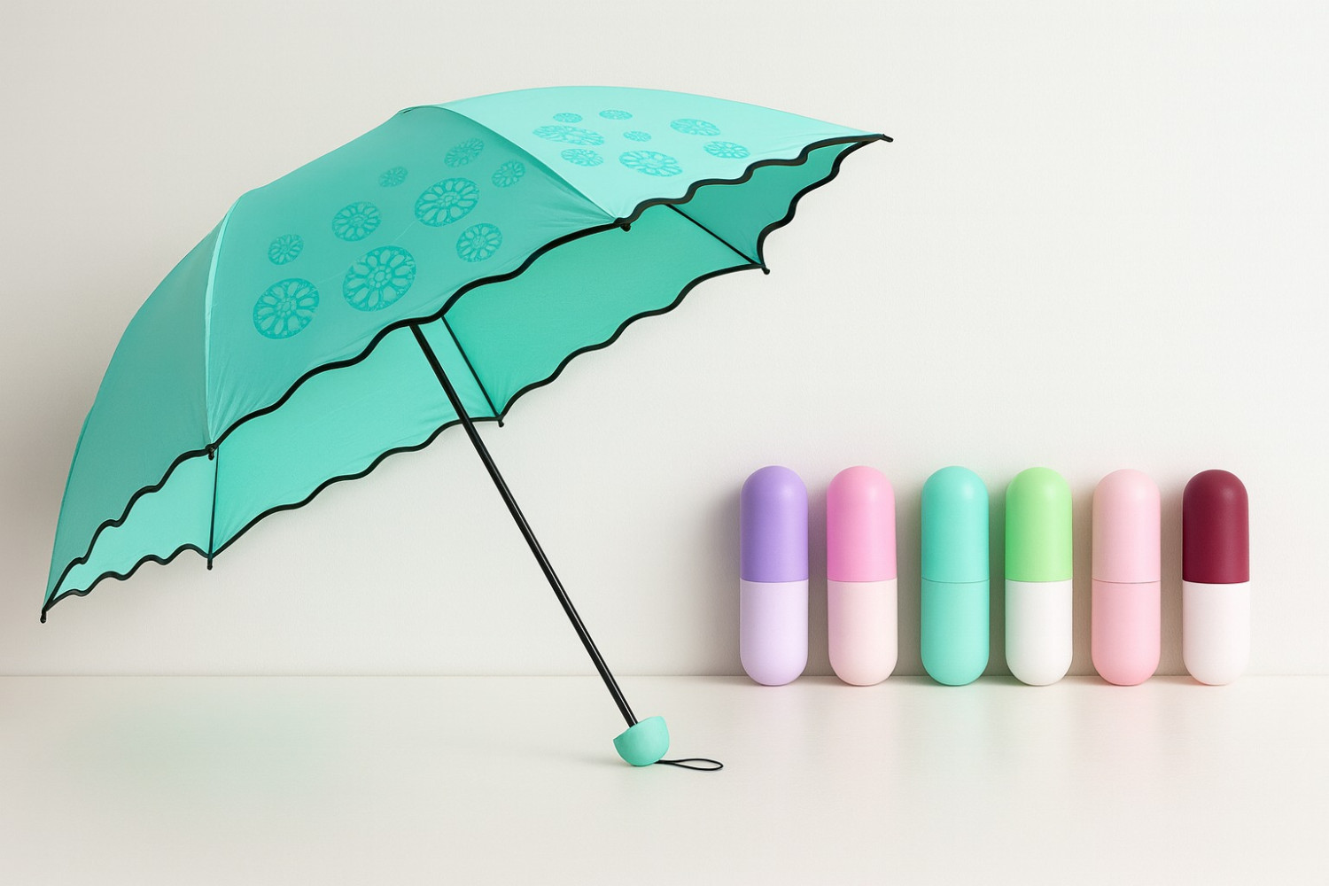 Available in multiple vibrant colors, this stylish umbrella combines practicality with modern design. The capsule cover keeps the umbrella dry and mess-free after use, making it perfect for travel, office, college, or everyday carry.