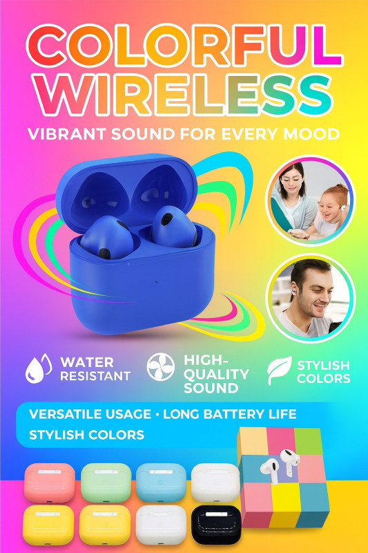 Add a pop of color to your music experience with these stylish Colorful Wireless Earbuds. Designed for comfort, durability, and unbeatable sound quality, these earbuds are perfect for every lifestyle – whether you’re working out, gaming, studying, or just chilling with your favorite playlist.