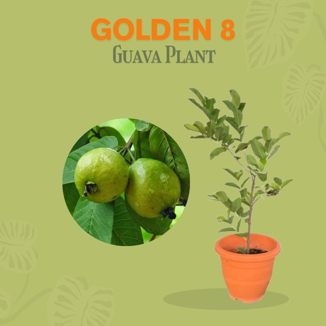 The Golden 8 Guava is a high-yield, golden-skinned guava variety known for its vibrant appearance and sweet, aromatic flavor. It produces large, round fruits with soft, creamy flesh and a pleasing tropical aroma. The plant is hardy, disease-resistant, and can start fruiting within the first year under optimal care.