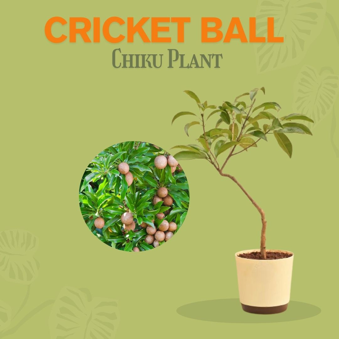 Cricket Ball Chiku is a large-fruited variety of sapota (chikoo), named after its shape and size. It delivers sweet, dense, brown-fleshed fruits that are ideal for fresh consumption and desserts. The tree is evergreen, easy to care for, and thrives in tropical climates.