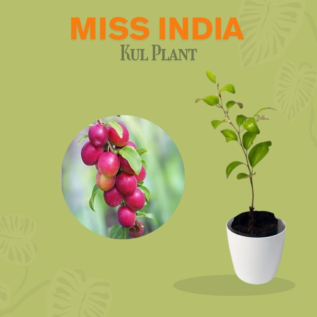 Miss India Kull is a premium variety of Indian jujube (ber) known for its large, crisp, and sweet-tangy fruits. It’s a hardy tree that thrives in dry and warm conditions, producing fruits that are rich in vitamin C and often eaten fresh or used in traditional medicine.