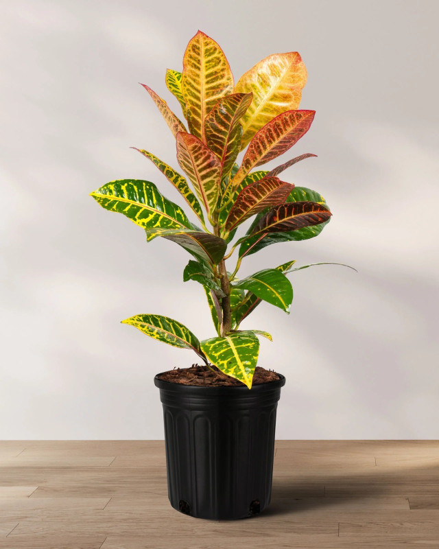 The Croton Flower Plant (Codiaeum variegatum) is a stunning ornamental plant known for its bold, colorful foliage. With vibrant shades of green, yellow, red, orange, and even purple, its leaves create a natural burst of color in any garden or indoor space. The plant’s unique leaf patterns—ranging from broad and flat to narrow and twisted—make it a favorite for plant lovers and home decorators.