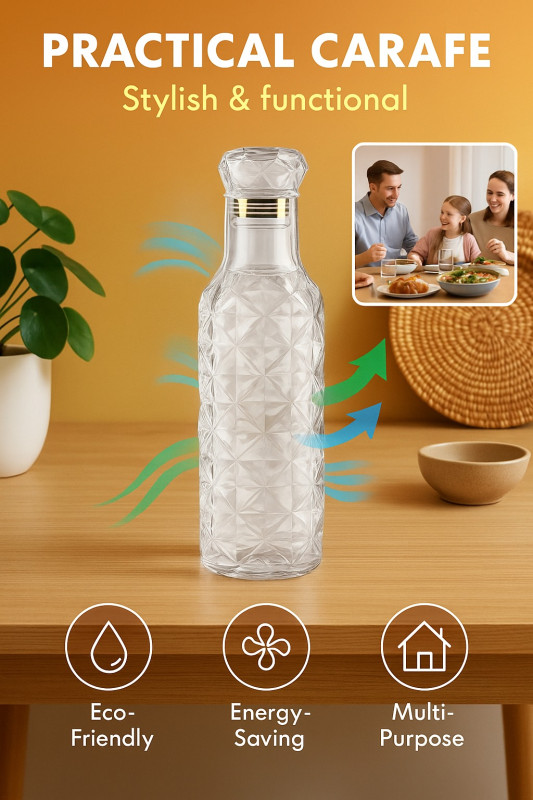 This Crystal Design Water Bottle Set (1L x 3) adds instant elegance to your kitchen or dining table. Made from premium BPA-free material, these bottles are leak-proof, durable, stylish, and perfect for home, office & family use. Stay classy, stay hydrated—a must-have combo for every modern home!