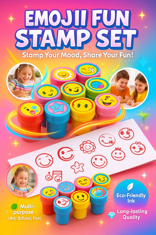 Make creativity exciting with this Emoji Fun Stamp Set! Each colorful stamp comes with pre-loaded eco-friendly ink, so kids can start stamping instantly without any mess. Designed with smiley faces, stars, flowers, and fun emojis, this set is perfect for art, craft, school projects, and fun activities.