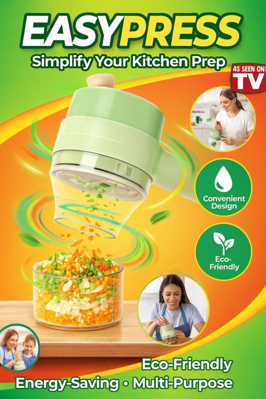 Simplify your kitchen prep with the Easypress Multipurpose Food Chopper. Designed with a sturdy container and a convenient press-handle system, this chopper makes cutting vegetables, fruits, garlic, onions, and more quick and effortless. Its sharp stainless-steel blades ensure fine and even chopping, while the eco-friendly design makes it safe and durable for everyday use.