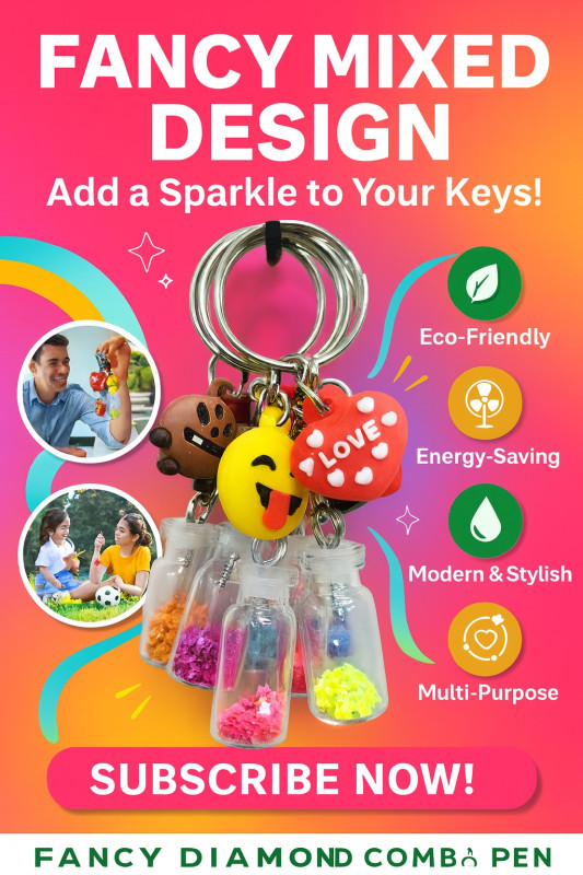 Bring fun, charm, and color to your keys with this Fancy Mixed Design Keychain. Featuring cute emoji faces, heart and cookie charms, and mini glass bottles filled with vibrant crystal-like stones, this keychain is a true style statement.