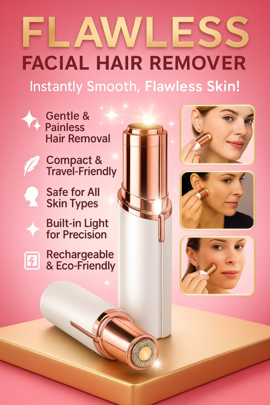 Achieve smooth, flawless skin instantly with the Flawless Facial Hair Remover. This compact, travel-friendly device offers gentle and painless hair removal, making it safe for all skin types. With a built-in light for precision and a rechargeable eco-friendly design, it’s the perfect beauty tool for everyday grooming.
