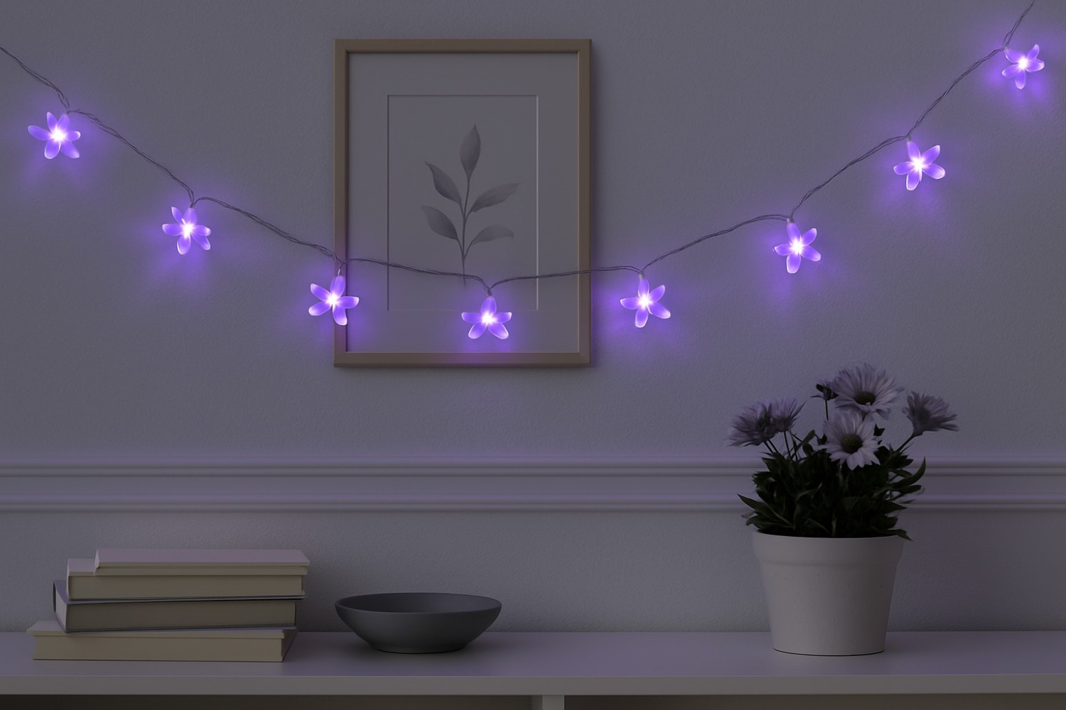 Beautiful flower-shaped LED decorative string lights.