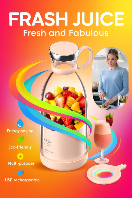 Enjoy fresh and healthy juices anywhere with the Fresh Juice Portable Blender. Designed for mobility and convenience, this stylish blender lets you make smoothies, shakes, and juices on the go. Its powerful blending technology crushes fruits, veggies, and ice with ease, while the sleek, reusable bottle design makes it easy to carry and sip directly. With USB recharging capability, it’s perfect for home, office, travel, gym, or outdoor activities. Eco-friendly, energy-saving, and multipurpose – it’s your perfect health companion.