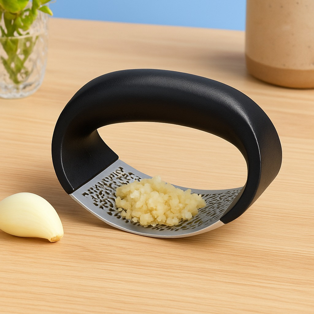 Upgrade your kitchen experience with this Ergonomic Garlic Press, designed to make crushing and mincing garlic effortless and mess-free. Made with durable stainless steel and an easy-grip handle, this tool allows you to press garlic with minimal effort. The curved, rocking design ensures a comfortable hold, while the wide press surface produces finely minced garlic every time. Easy to clean and eco-friendly, this garlic press is the perfect addition to any modern kitchen.