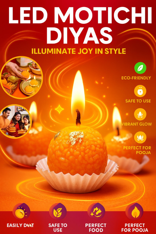 Add sweetness and glow to your celebrations with these LED Motichur Diyas, the perfect blend of tradition and innovation! Designed to look exactly like real Motichur Ladoos, these eco-friendly diyas bring a vibrant, festive charm to your pooja setup, dining table, or décor corner.