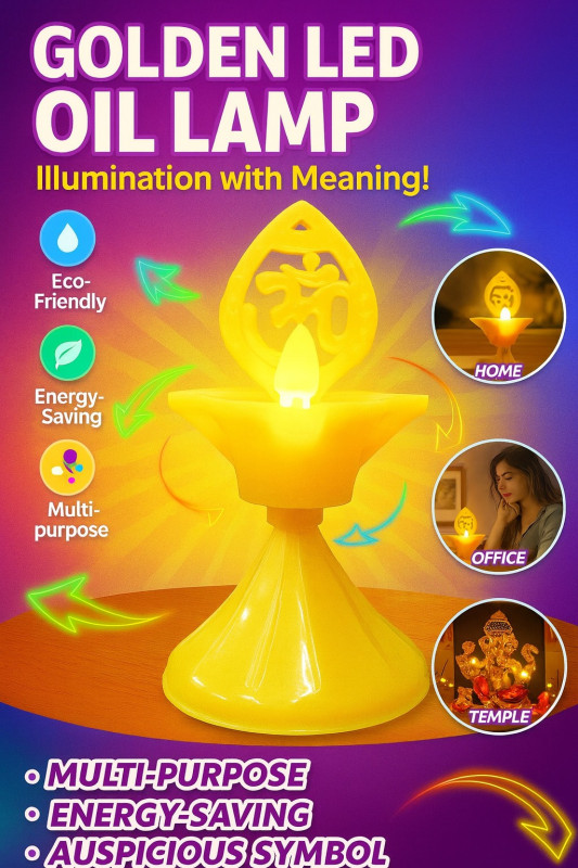 Bring divine light and positive energy into your home with the Golden LED Oil Lamp – a perfect blend of spirituality and modern design! Crafted with a radiant golden finish, this LED diya symbolizes purity, peace, and prosperity. Its warm, flickering glow recreates the charm of a traditional oil lamp without the mess of wax or smoke.