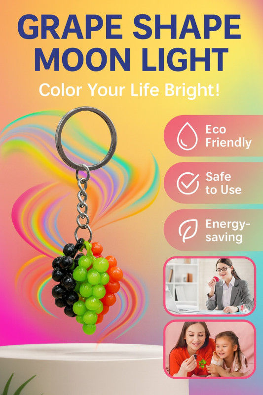 Add a burst of fun and color to your keys with this Grape Shape Moon Light Keychain! Designed to look like a realistic bunch of grapes, this keychain comes in bright shades of black, green, and red, making it both eye-catching and stylish. Made from durable, eco-friendly material, it’s safe to use, lightweight, and easy to carry anywhere.