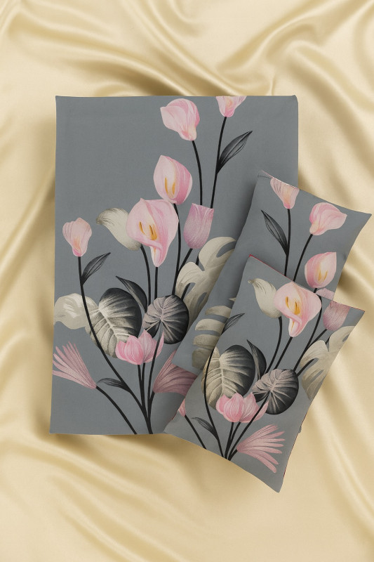 Bring a touch of elegance and softness to your bedroom with this grey floral cotton double bedsheet set. Designed with delicate pink and white blossoms on a muted grey base, this bedsheet exudes a calm, modern, and sophisticated vibe. Crafted from premium quality cotton fabric, it ensures comfort, breathability, and durability. The matching pillow covers with the same floral design complete the coordinated look, making your bed the highlight of your room décor.