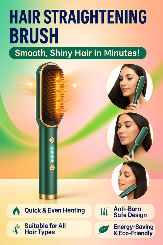 Get smooth, shiny, salon-like hair in minutes with the Hair Straightening Brush. Designed with quick & even heating technology, anti-burn safe design, and suitable for all hair types, this eco-friendly styling tool makes hair straightening effortless and safe.