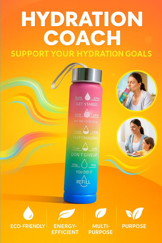 Stay healthy and meet your daily water goals with the Hydration Coach Water Bottle. Featuring motivational time markers, this bottle reminds you to drink water throughout the day, keeping you refreshed and energized.