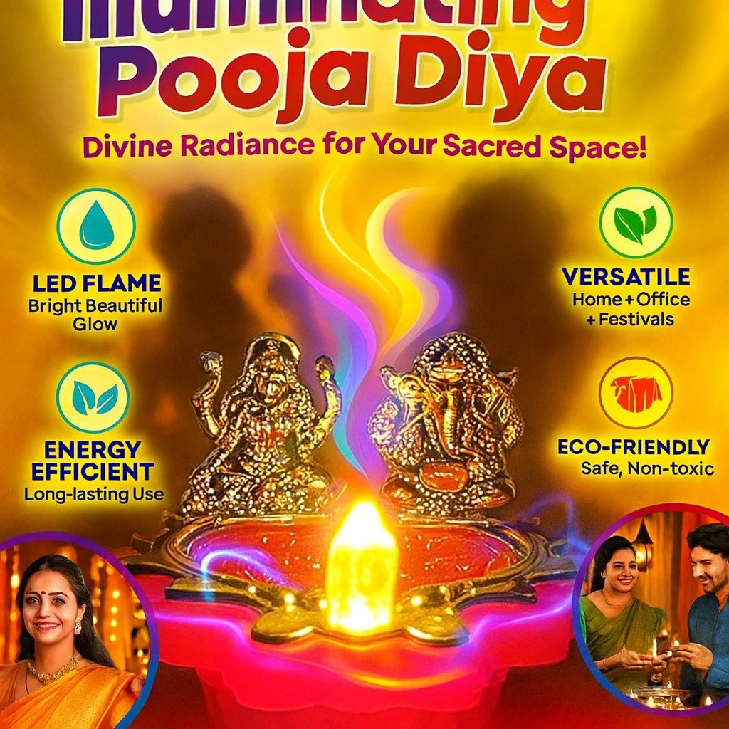 Light up your sacred space with the Illuminating Pooja Diya — a stunning fusion of spirituality and modern design. Featuring LED flame technology, it glows with divine beauty, spreading warmth, positivity, and peace.