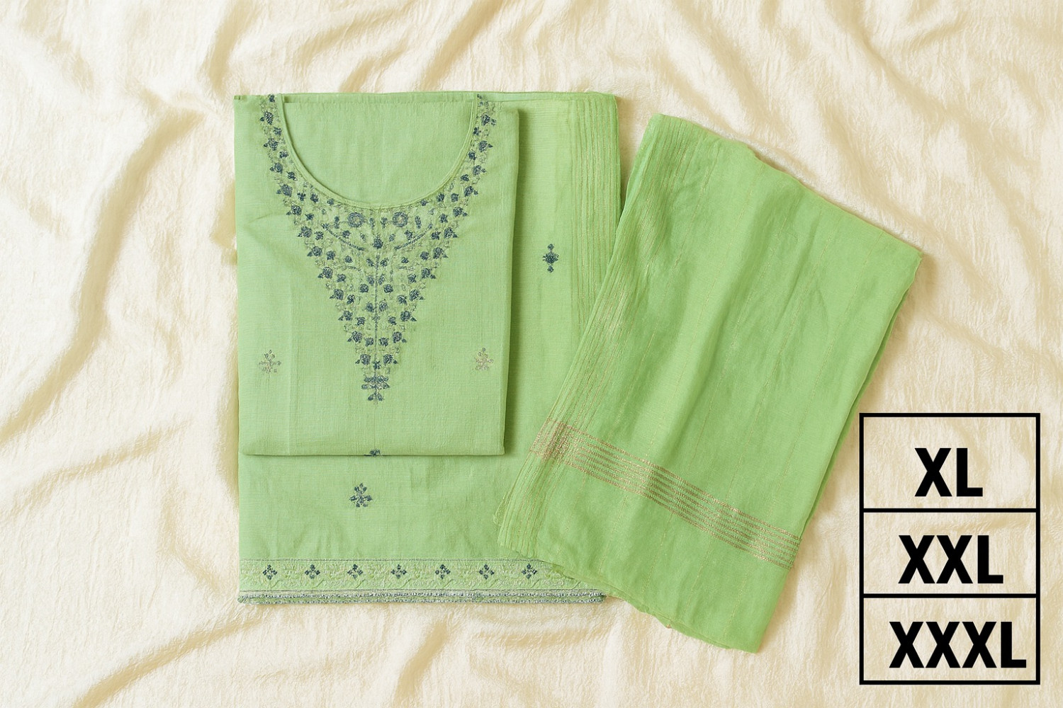 ? Elegant Light Green Embroidered Cotton Kurta Set with Dupatta ?