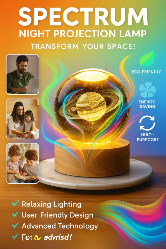 Transform your room into a cosmic paradise with the Spectrum Night Projection Lamp! Designed with advanced lighting technology, this elegant lamp projects a mesmerizing 3D planet illusion that fills your space with soothing, colorful light.