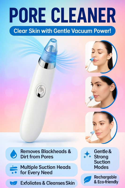 Get clear, glowing skin with the Pore Cleaner Blackhead Remover Vacuum. Designed with multiple suction heads and gentle yet powerful suction modes, it effectively removes blackheads, dirt, and excess oil from pores. Rechargeable, eco-friendly, and easy to use – it’s the ultimate skincare tool for daily cleansing.