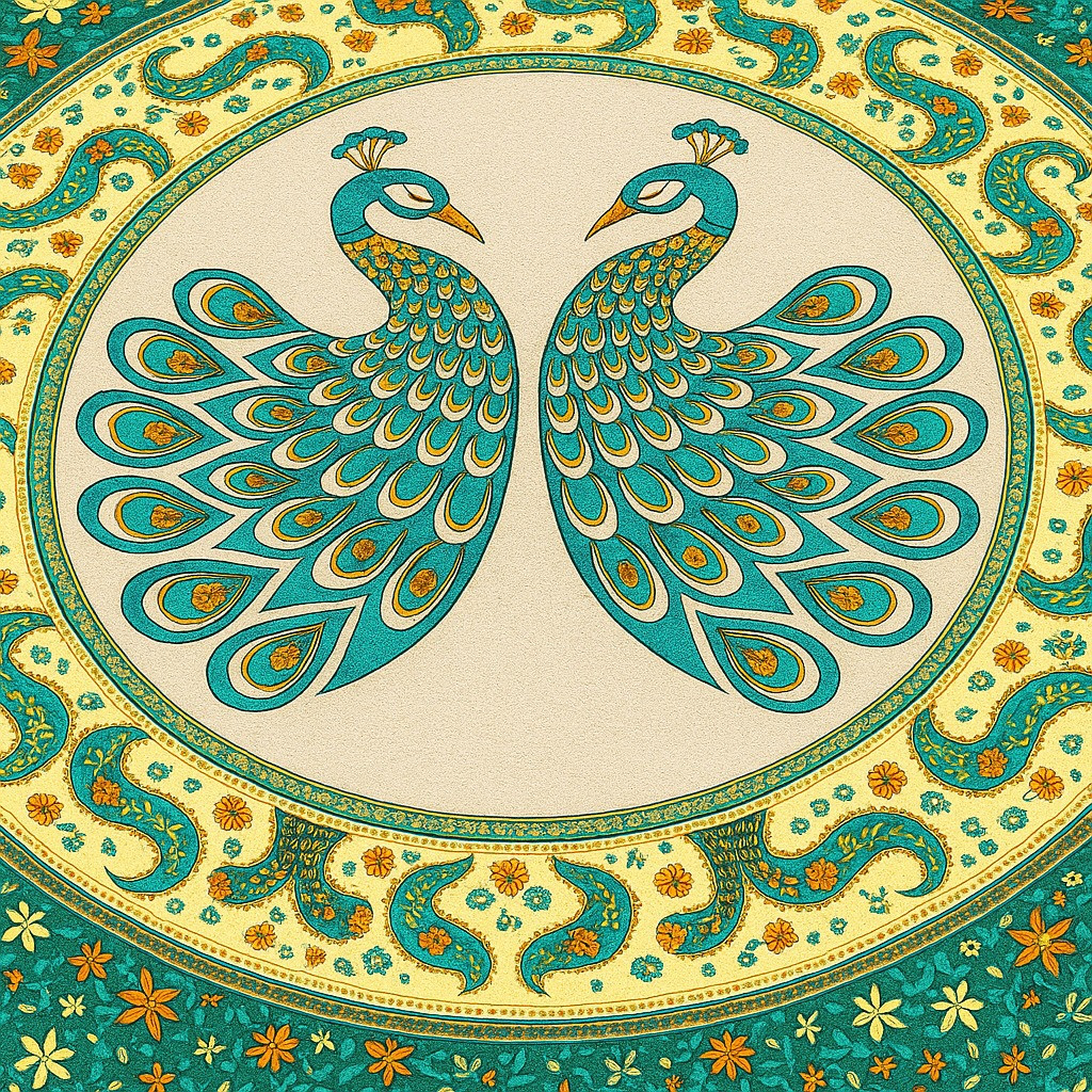 Design: Peacock print with floral patterns