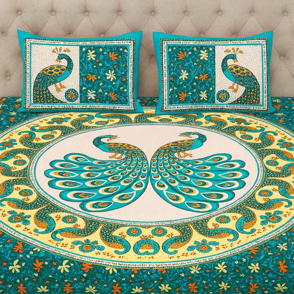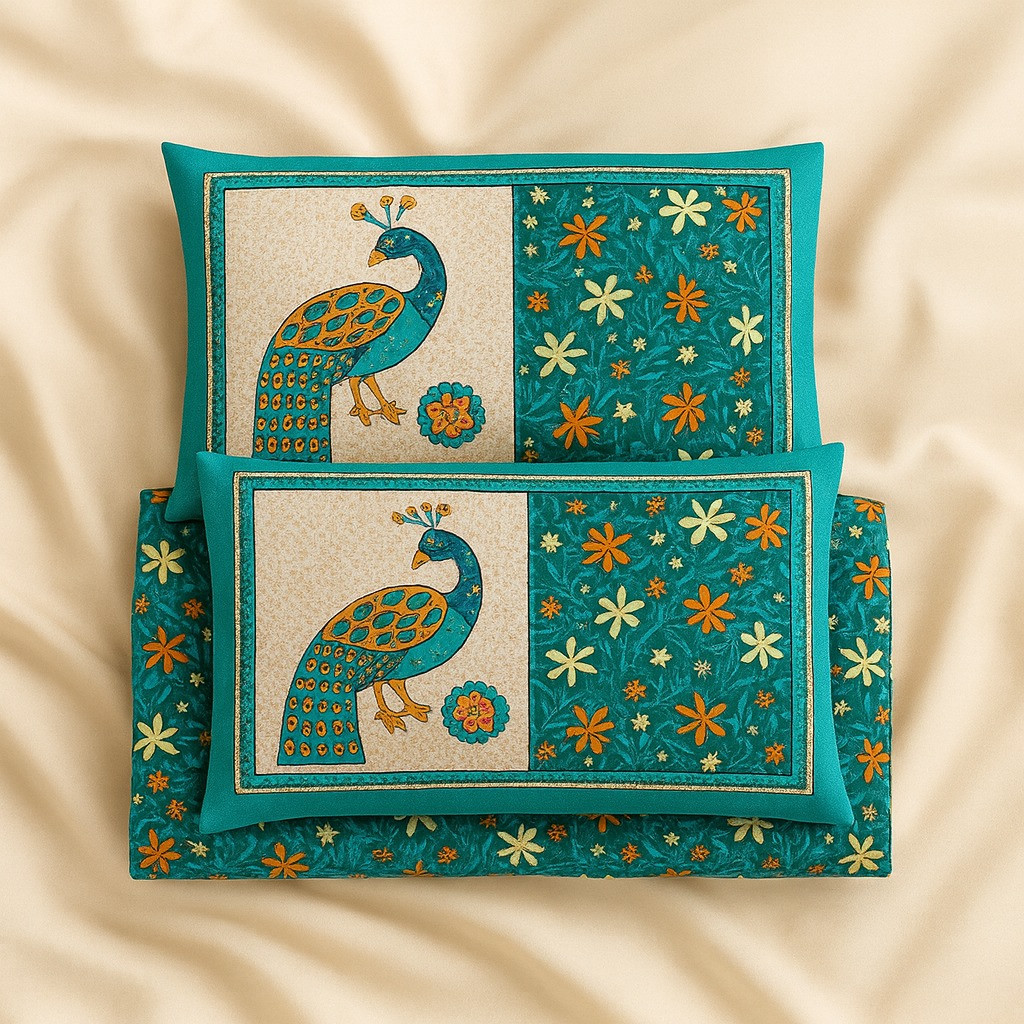 The set comes with 2 matching pillow covers designed with complementary peacock patterns, enhancing the overall look of your bed setup. Its fade-resistant colors and durable stitching ensure long-lasting use while maintaining a fresh and stylish appeal.