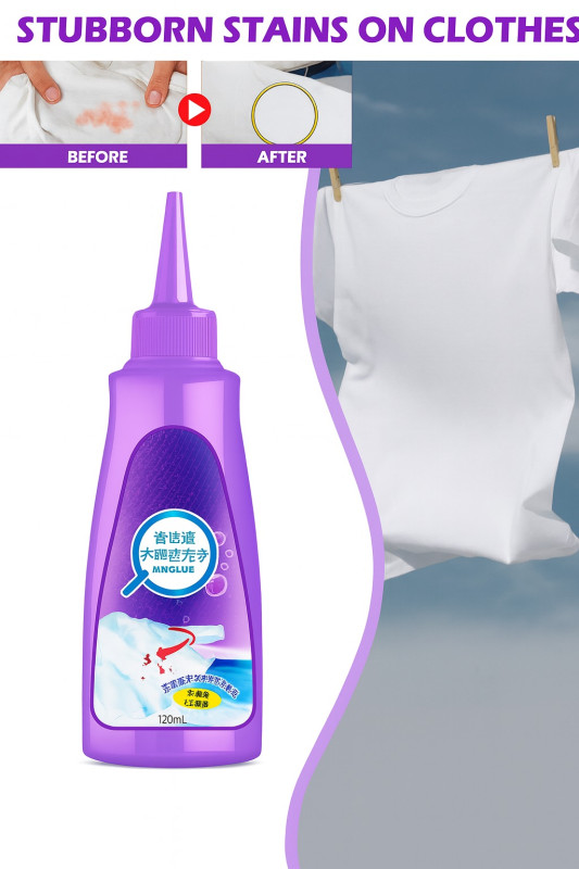 The easy-squeeze bottle with a precision nozzle allows you to apply the liquid directly onto stains for targeted cleaning. Its compact size makes it convenient for both home and travel use. Suitable for cotton, polyester, and most washable fabrics, it helps restore clothes to their original brightness.