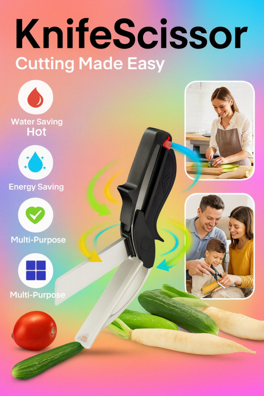Make cooking faster, easier, and more fun with this innovative Knife Scissor! Designed with a sharp stainless-steel blade and a built-in cutting board, it lets you slice, chop, and cut vegetables, fruits, and even meat effortlessly.