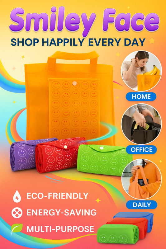 Turn every shopping trip into a joyful experience with our Smiley Face Eco-Friendly Tote Bags. Designed with vibrant colors and adorable smiley prints, these foldable reusable bags bring fun, convenience, and sustainability to your daily routine.