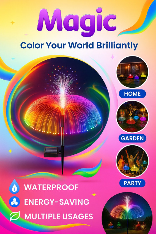 Bring magic and elegance to your space with this Solar Powered Fiber Optic LED Light. Designed to look like a glowing fountain of colors, this decorative light creates a stunning ambiance in your home, garden, or party space. Its unique fiber optic design projects vibrant rainbow colors, adding charm and joy wherever it’s placed.
