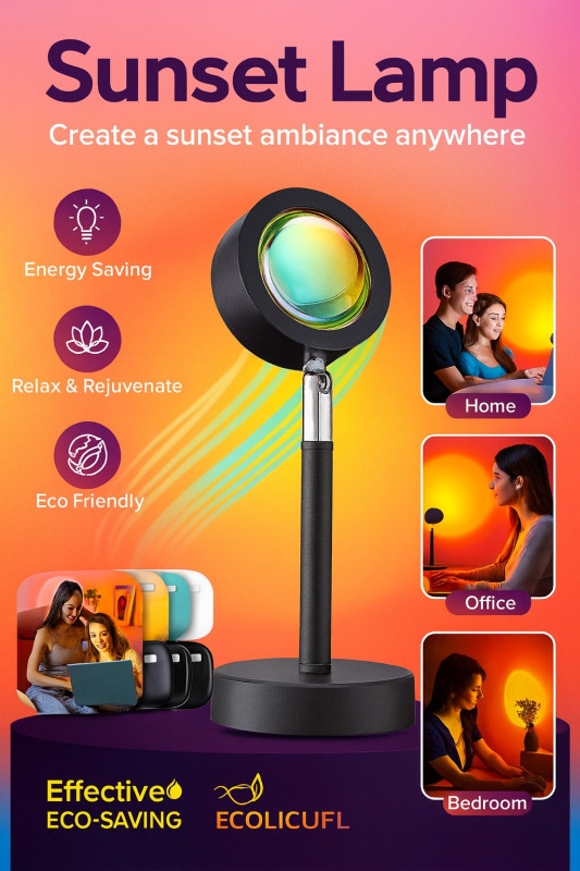 Transform any room into a breathtaking oasis with our Sunset Projection Lamp ?. Whether you want to create a cozy vibe for your bedroom, a romantic glow for your living room, or a unique backdrop for stunning photos, this lamp delivers the perfect ambiance.