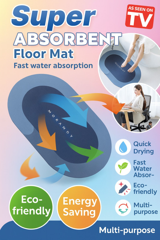 Upgrade your home with our Super Absorbent Floor Mat, designed to keep your space dry, clean, and stylish. Made with advanced absorbent technology, this mat instantly soaks up water and dries quickly, preventing slips and keeping your floors spotless.