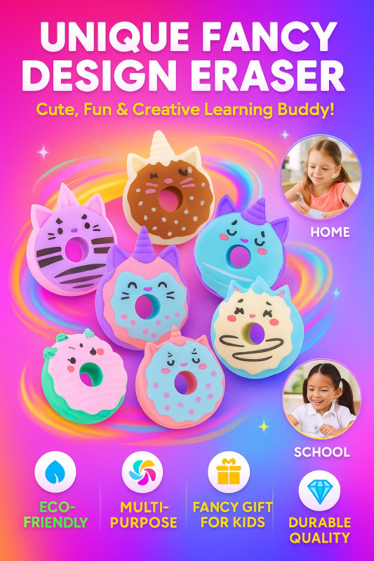 Brighten up study time with these adorable Unicorn Donut Erasers! Designed with fun colors and creative expressions, these erasers are more than just stationery – they are a playful learning buddy for kids.