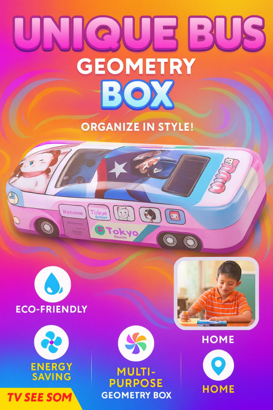 Make school time more exciting with the Unique Bus Geometry Box, designed in a fun and colorful bus shape. Perfect for kids who love stylish stationery, this box keeps all their school essentials safe and organized while adding a touch of creativity to their study routine.