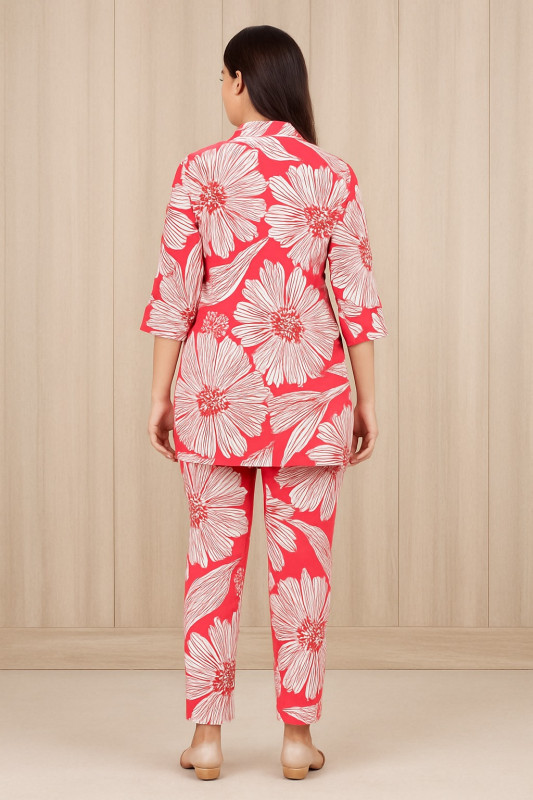 Brighten up your ethnic wardrobe with this bold and vibrant red kurta set, designed with oversized floral motifs that make a striking style statement. Made from breathable cotton fabric, this set is ideal for casual wear, daily outings, or office wear, ensuring both comfort and style.