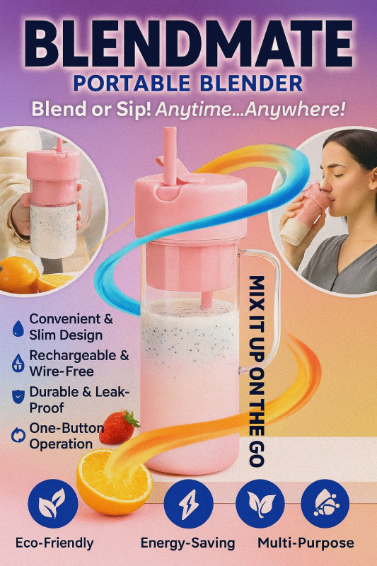 Take your smoothies, shakes, and juices on the go with the BlendMate Portable Blender. Designed with a slim, lightweight body and built-in handle, this rechargeable blender makes blending effortless and convenient—whether at home, in the office, or outdoors.