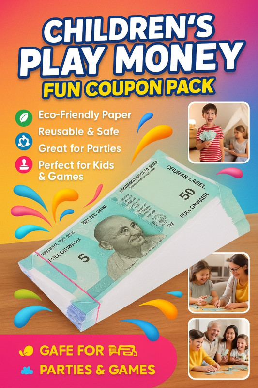 Make learning and playtime more exciting with Children’s Play Money Notes. Designed to look like fun coupons, these notes are not real currency, but perfect for games, parties, and kids’ activities. Safe, eco-friendly, and reusable, they bring joy to every occasion.