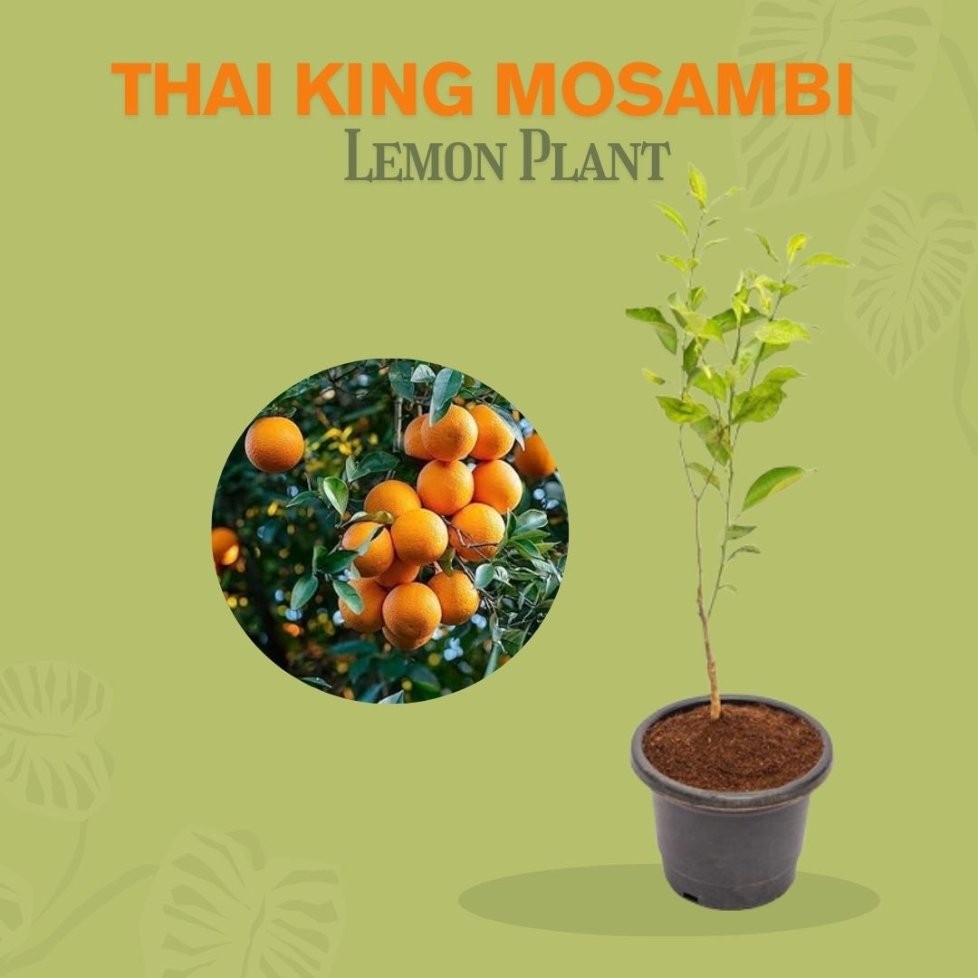 Thai King Mosambi is a premium sweet lime variety known for its smooth greenish-yellow skin and extremely sweet, low-acid juice. This citrus tree is both a great fruit producer and an attractive garden plant, ideal for fresh juice lovers.