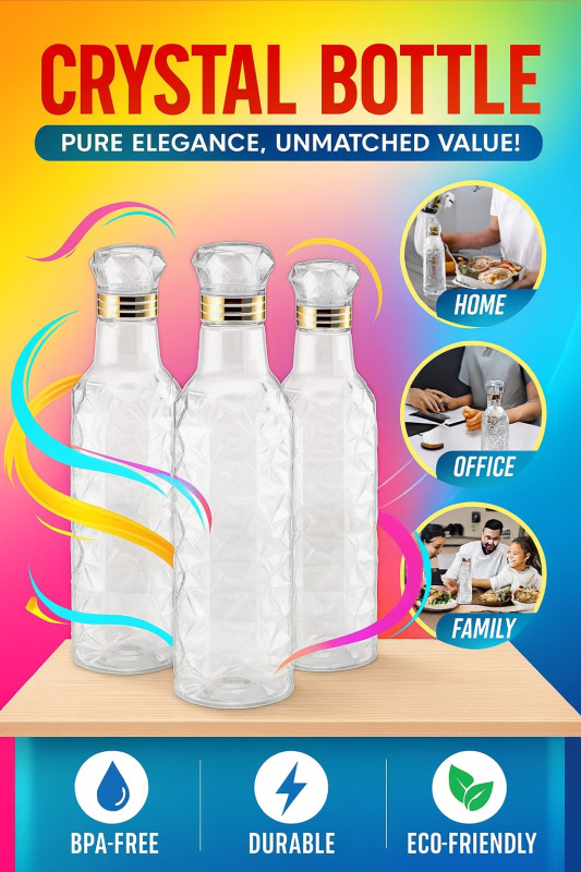 This Crystal Design Water Bottle Set (1L x 3) adds instant elegance to your kitchen or dining table. Made from premium BPA-free material, these bottles are leak-proof, durable, stylish, and perfect for home, office & family use. Stay classy, stay hydrated—a must-have combo for every modern home!