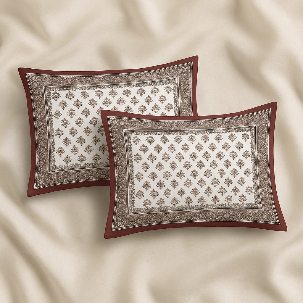The ethnic-inspired border design with traditional motifs adds a touch of sophistication and blends seamlessly with modern or traditional bedroom décor. The set includes two matching pillow covers to complete the elegant look.