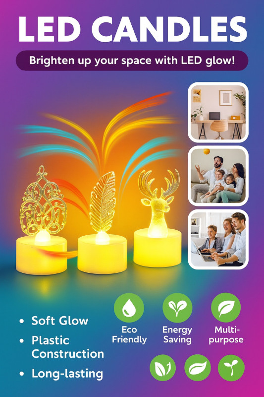 Whether you're decorating your home, office, or a special event, these LED candles bring a soft, soothing light that enhances every moment. Crafted from durable plastic and powered by energy-saving LED technology, they’re eco-friendly, long-lasting, and multi-purpose—ideal for celebrations, relaxation, or daily décor.