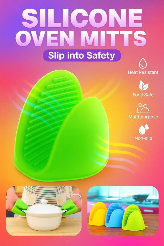 Bring safety and style into your kitchen with these Premium Silicone Oven Mitts! ? Designed to protect your hands from hot pots, pans, and baking trays, these mitts are heat-resistant, food-safe, and non-slip. Their flexible silicone grip makes handling cookware effortless, while the colorful, modern design brightens up your kitchen. Perfect for baking, cooking, grilling, or even handling frozen items – these oven mitts are a must-have multipurpose tool for every home chef. Slip them on and cook with confidence! ??✨