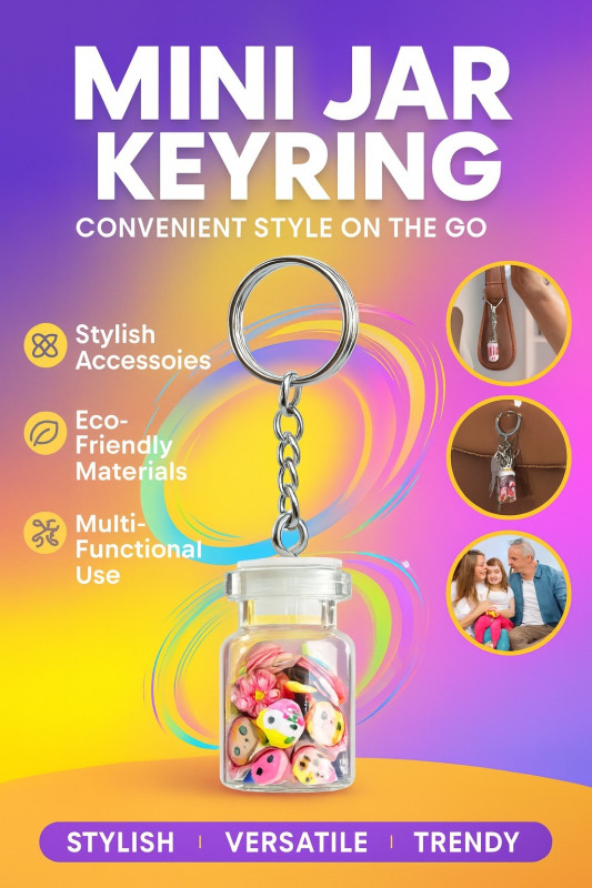 Bring a pop of charm to your keys or bags with the Mini Jar Keyring! ? This trendy accessory features a tiny transparent jar filled with colorful, fun designs that make it both stylish and unique. Made from eco-friendly materials, it’s lightweight, durable, and perfect for daily use. Whether you attach it to your keys, handbag, or backpack, this mini jar keychain is sure to add a playful and eye-catching touch.