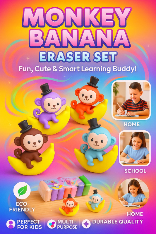 Bring fun and learning together with the Monkey Banana Eraser Set! ??