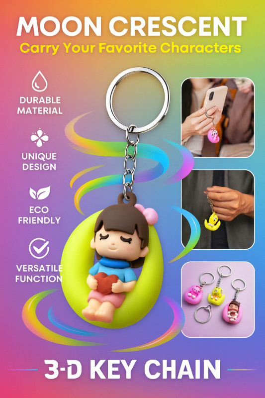 Add a touch of cuteness and creativity to your daily essentials with these Moon Crescent 3D Keychains! Featuring adorable characters like kids, animals, and superheroes sitting on a crescent moon, these keychains are the perfect blend of fun and practicality.