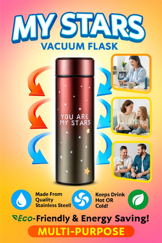 Elevate your hydration experience with the “You Are My Stars Vacuum Flask” – designed to keep your favorite beverages hot or cold for hours. Crafted with premium stainless steel, this vacuum-insulated flask ensures long-lasting temperature retention while being eco-friendly and energy-saving. Its sleek starry design makes it not just a bottle but also a stylish companion for office, travel, gym, or home use.