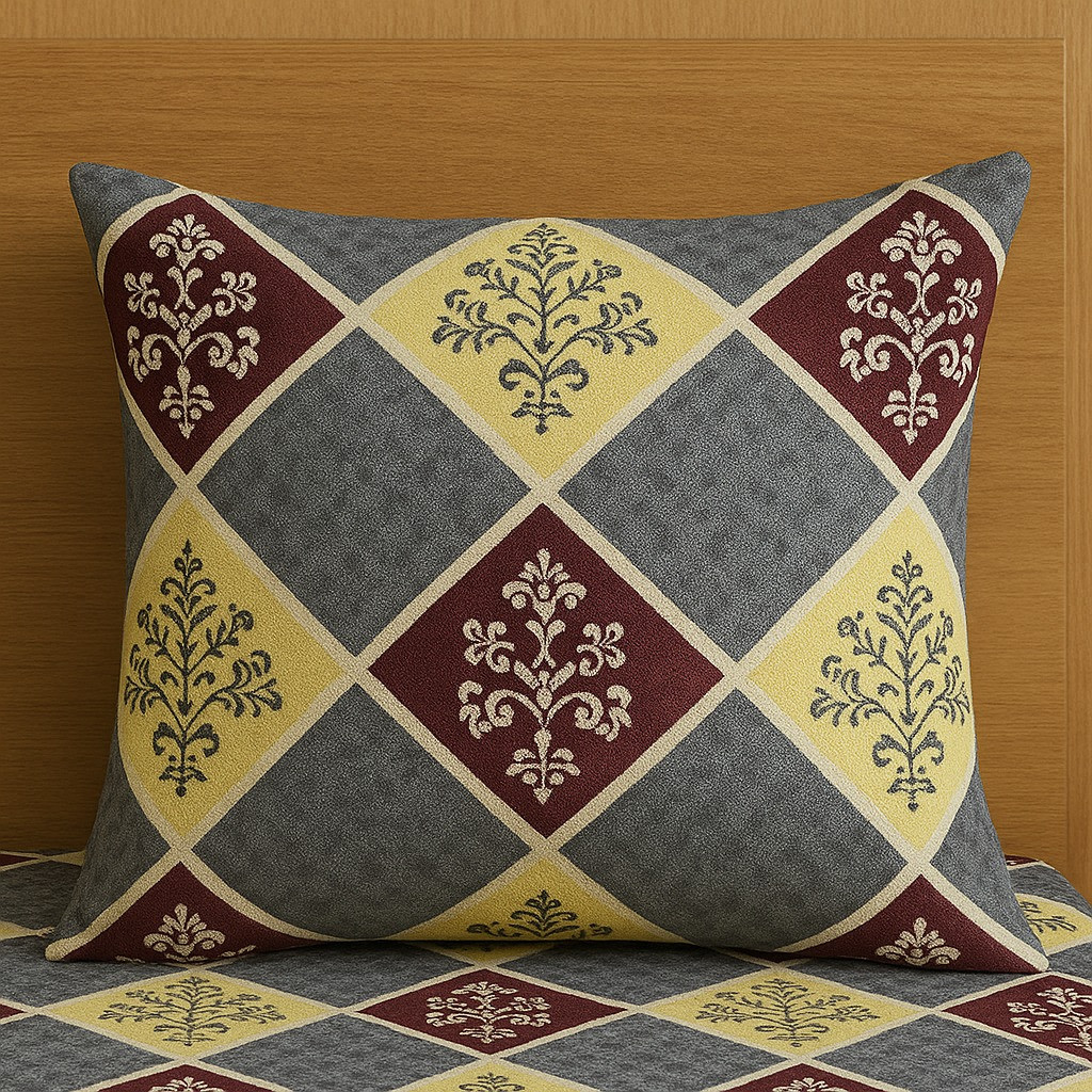 Bring elegance and comfort to your bedroom with this premium cotton double bed sheet set, designed in a modern diamond checkered pattern in shades of grey, yellow, and maroon. Crafted from high-quality cotton fabric, this bed sheet offers softness, durability, and breathability for a restful sleep.