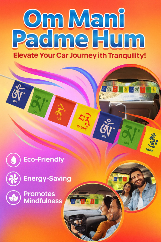 Transform your daily commute into a journey of peace and mindfulness! These miniature Tibetan Prayer Flags bring the ancient, powerful mantra "Om Mani Padme Hum"—the Jewel in the Lotus—right into your car or home.