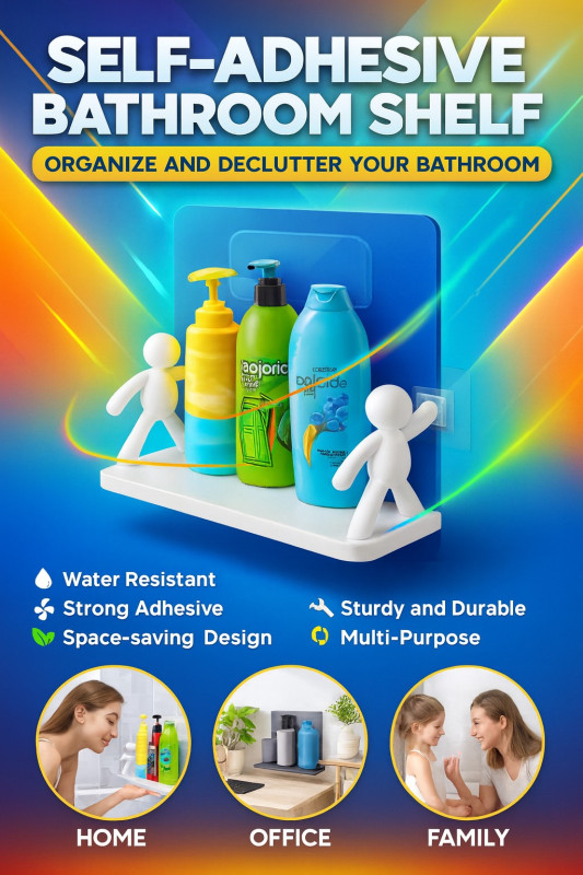 Declutter and organize your space with this Self-Adhesive Bathroom Shelf. Designed with a strong adhesive backing, it installs easily without drilling or damaging walls. Its water-resistant and durable build makes it perfect for storing toiletries, shampoos, soaps, and other essentials in the bathroom, kitchen, or office.